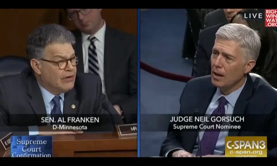 Franken recounted the facts of the case, noting that Gorsuch’s opinion seemed to abandon any sense of reality: “It is absurd to say this company is in its rights to fire him because he made the choice of possibly dying from freezing to death or causing other people to die possibly by driving an unsafe vehicle. That’s absurd. Now I had a career in identifying absurdity and I know it when I see it and it makes me question your judgment.”