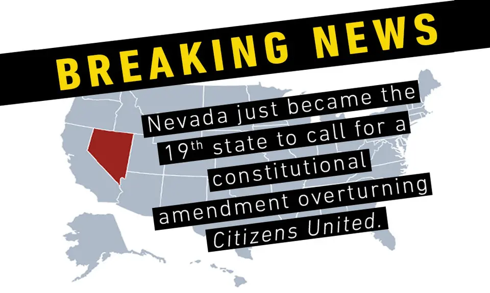 This week Nevada became the 19th state to officially call for a constitutional amendment to overturn Supreme Court decisions, such as Citizens United, which have led to an explosion of political spending by powerful special interests seeking to advance their agendas in Washington and in state capitals across the country.