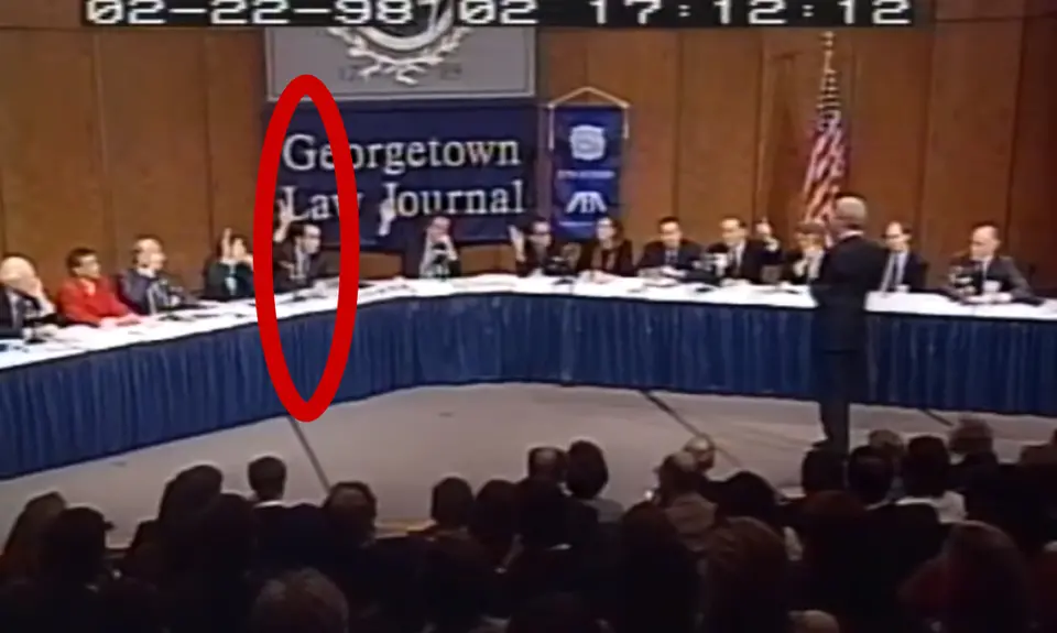 On the afternoon of day three of the Supreme Court confirmation hearing, Sen. Whitehouse showed a telling video from a 1998 Georgetown Law School symposium that Kavanaugh was participating in. At one point, the moderator asks: