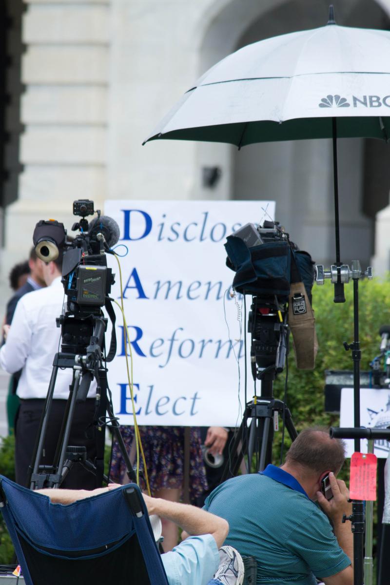 In just a short period of time, the impact of the Supreme Court’s egregious ruling in Citizens United v. Federal Election Commission, which opened the floodgates to corporate and special interest spending in our elections, has been felt nationwide. In response, a growing chorus of activists and organizations are mobilizing to overturn the decision by amending (the A in DARE) the Constitution. As evidenced by the press conference, public officials are responding to this movement. Nearly 2,000 are already on record in support of amending the Constitution to overturn Citizens United, including 92 Representatives in the House.