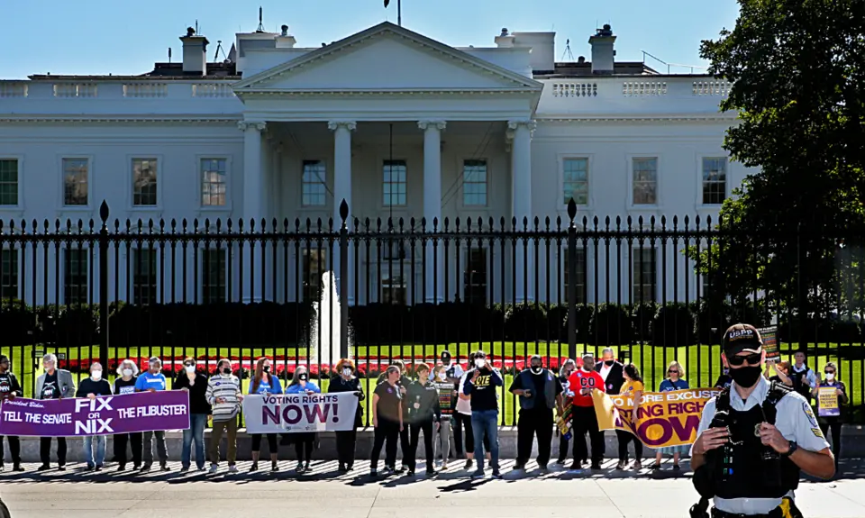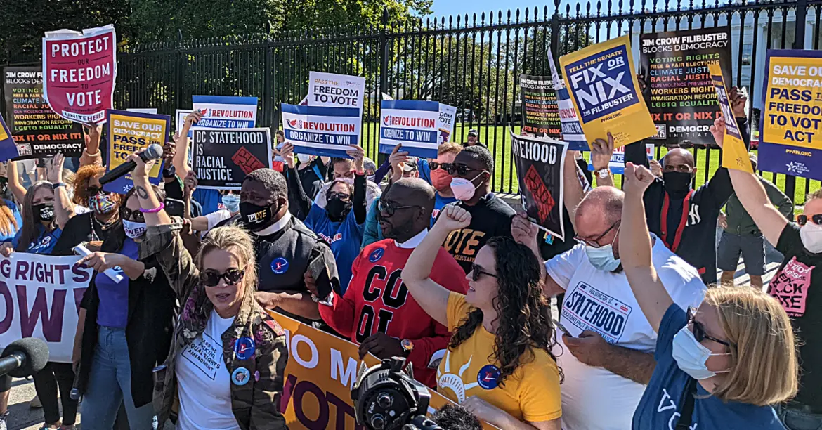 On October 19, People For the American Way, the League of Women Voters of the United States, and the Declaration for American Democracy, alongside clergy, young elected officials, and coalition partners, escalated demands for the White House to act on voting rights without delay in an action that resulted in the arrests of 25 participants.