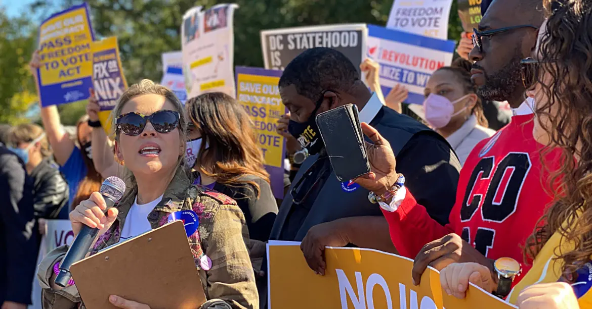 Shortly before walking to the White House, Jana Morgan, Director of Declaration for American Democracy, spoke about how the freedom to vote is the bedrock of our democracy.