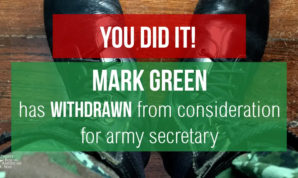 This is a major victory for anyone who cares about equality. People For the American Way activists and PFAW itself had taken a strong stand against Green's intended nomination. Our message: Someone with such extreme far-right views should not be allowed to serve in this important government post.