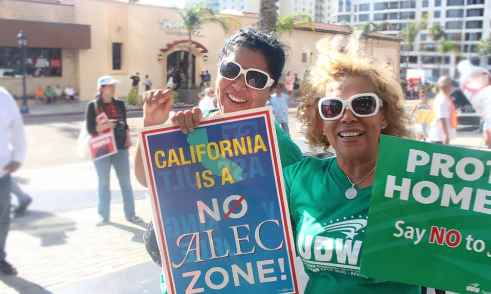 Last Wednesday, I joined thousands of folks as we gathered together to rally against the American Legislative Exchange Council (ALEC) during their annual meeting in San Diego. This was a massive protest to resist this right-wing organization, and they were met with many faces including workers, community organizers, faith-based leaders, and an assortment of other progressives.