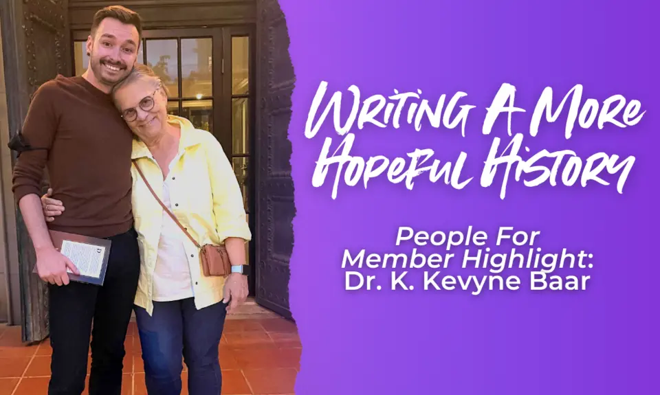I support People For because I really love how they work across generations — and I have always felt there was a place for me in the People For movement. When I was younger, People For had mentors I could look up to. Now that I am 75, I feel that my experiences are valued, and I can help mentor younger generations.