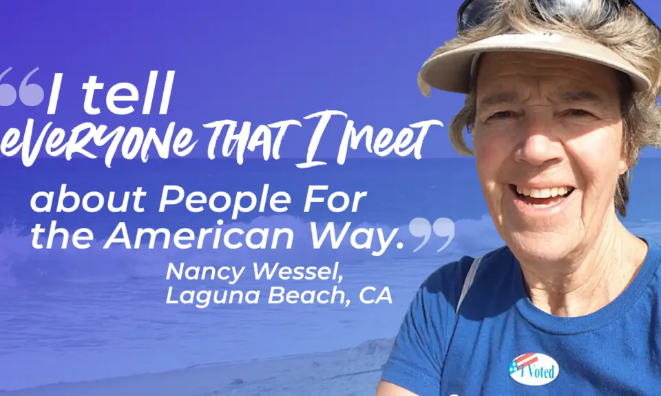 I tell everyone I meet about People For the American Way because they are getting things done. When I decided it was not okay to be quiet or simply stand by, they gave me the information I needed to act. It feels good knowing I'm leaving something for this organization that keeps me and many other citizens hopeful in these times.