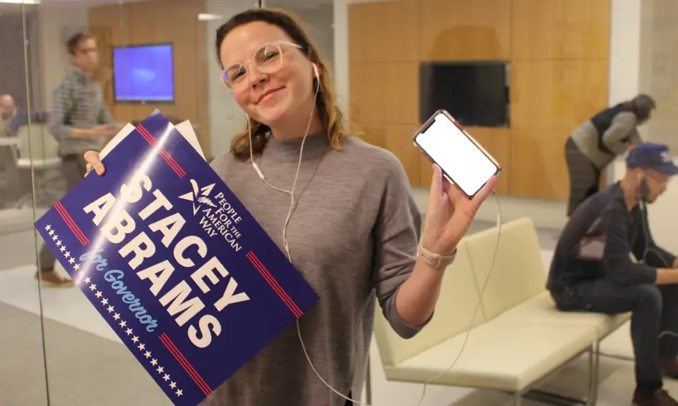 On October 11, People For the American Way in solidarity with Our Revolution hosted a phone bank to rally support for Stacey Abrams’s history-making campaign for governor of Georgia. The goal of the evening was to recruit volunteers in Georgia for Abrams as she enters her final month of the campaign. The polls have been especially tight in this race, and after hearing news of Brian Kemp’s attempt to keep a significant number of Black voters from the polls, rallying support for Abrams has become an even bigger priority for PFAW as we fight for a fair and just election.