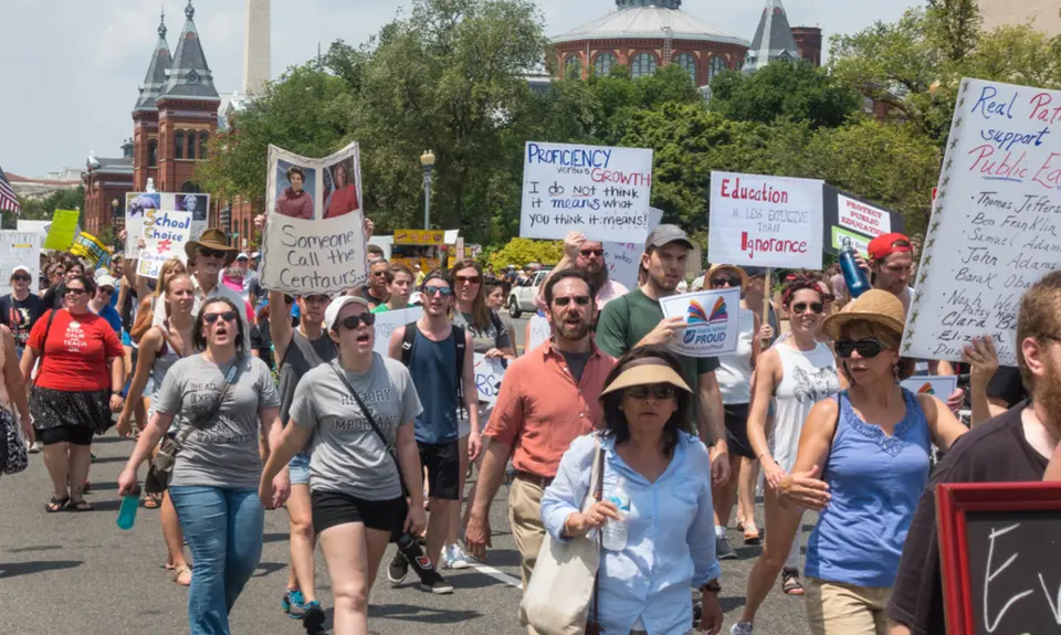 JULY 22, 2017: Marchers in National March for Public Education march to Department of Education Building, protesting cuts in federal funds and the expanding private-school vouchers.