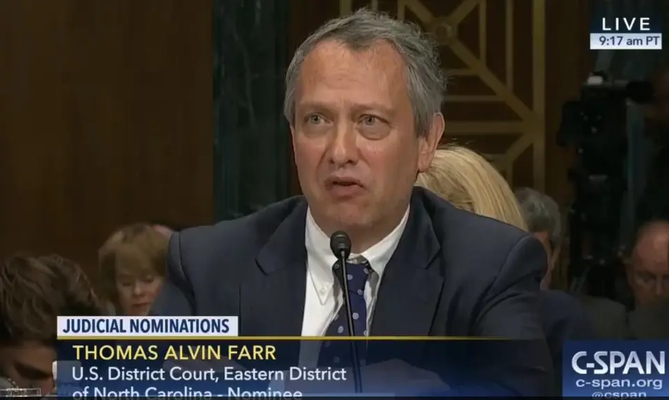 Which brings us to Thomas Farr, Trump’s nominee for a federal court in North Carolina.