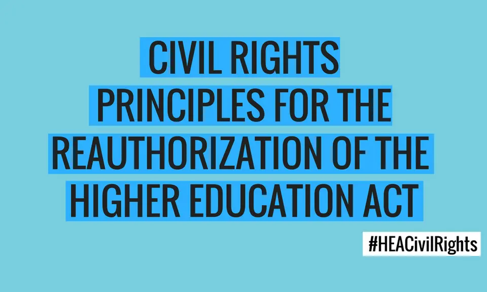 The Higher Education Act was first passed in 1965, during the height of the civil rights movement, in response to demands from low-income communities and communities of color that the federal government do more to open the doors to higher education and enable students to attain the education and degrees they knew would mean economic, social, and political opportunity in the United States. While some challenges remain the same, new challenges have arisen in the 50 years since the law was first passed. The fundamental desire of communities, however, and the obligation of the federal government to assist, remain the same. It is in this spirit that we offer the following principles that must be included in a reauthorization of the Higher Education Act if we’re going to strengthen and build a higher education system that provides equitable access to and success in a high-quality postsecondary education for all students, especially for those students who have historically experienced and continue to experience barriers to success in higher education.