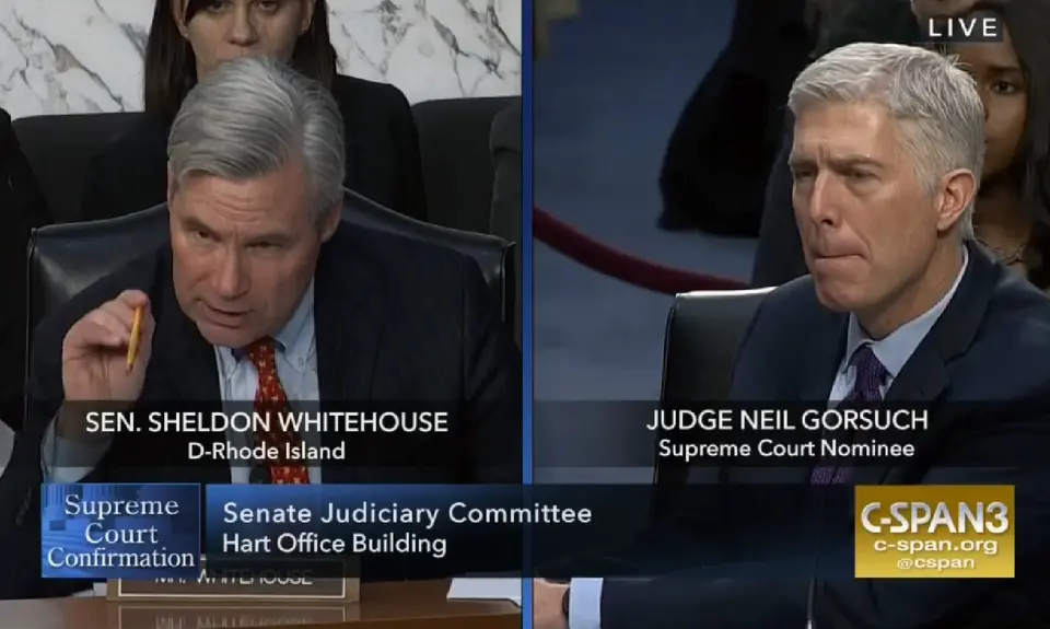 In the exchange, Senator Whitehouse highlights the fact that the conservative Judicial Crisis Network spent more than $7 million opposing the nomination of Chief Judge Merrick Garland, while spending more than $10 million supporting Judge Gorsuch. When pressed about why these donors would want him on the bench—so much that they would spend $17 million on his behalf—Gorsuch deflected by suggesting that Whitehouse ought to ask them himself.