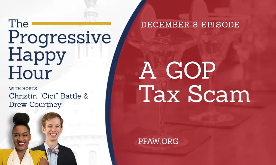 Last weekend Republican senators passed a cruel and immensely unpopular tax bill that steals from working people to give to the super-rich. In the December 8 episode of “The Progressive Happy Hour,” hosts Christin “Cici” Battle and Drew Courtney sit down with TJ Helmstetter, communications director of Americans for Tax Fairness, to get up to speed on the GOP tax scam and where we go from here.