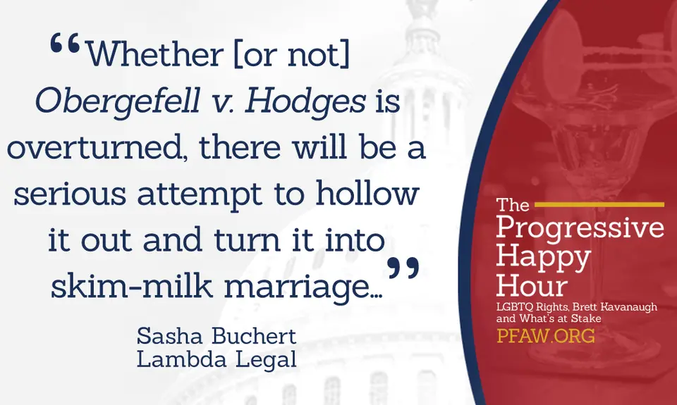 In the July 20 episode of “The Progressive Happy Hour,” co-host Drew Courtney and PFAW’s Right Wing Watch Research Director Adele Stan sat down with Lambda Legal Staff Attorney Sasha Buchert to discuss Kavanaugh’s judicial record and philosophy, the broader importance of the judiciary at the lower court level and the threats to LGBTQ civil rights if he is confirmed.
