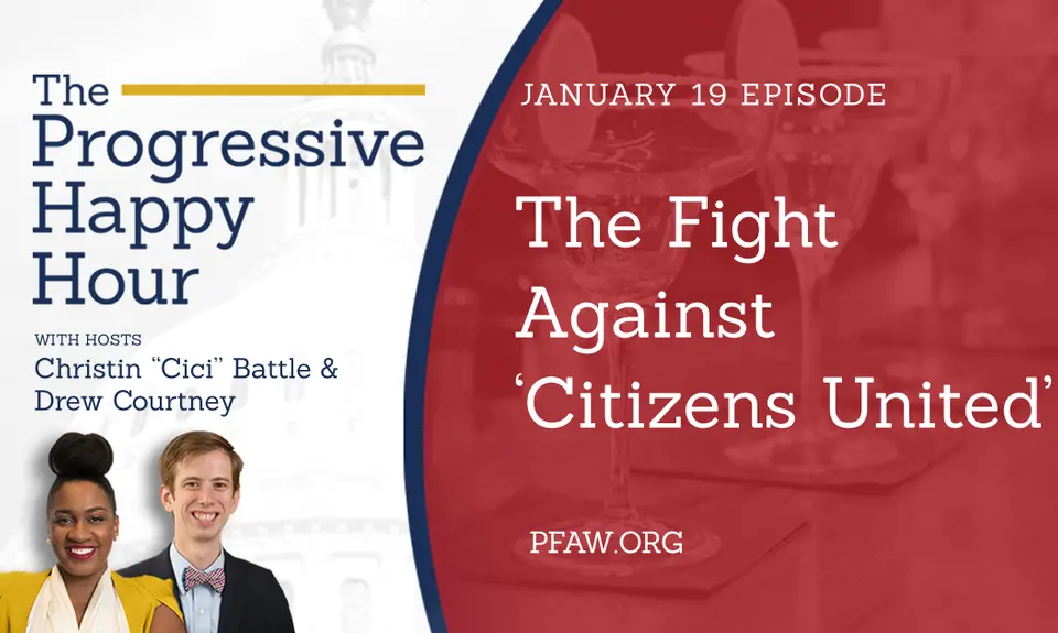 In the January 19 episode of “The Progressive Happy Hour,” hosts Christin “Cici” Battle and Drew Courtney sat down with Rio Tazewell, PFAW’s Government By the People Campaign Manager, to talk about the destructive legacy of Citizens United and the ways in which people across the country are successfully pushing for money in politics reform.
