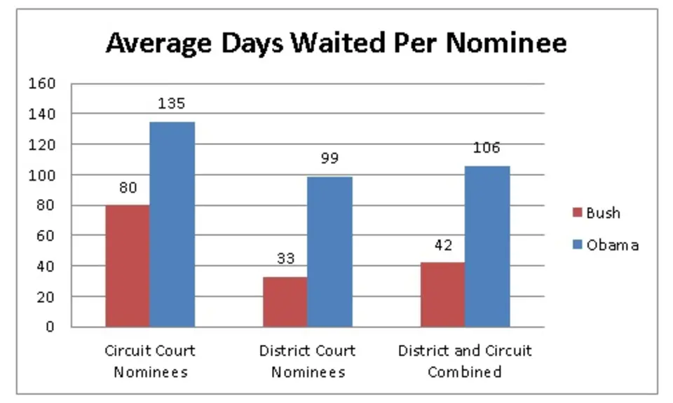 Before they're confirmed President Obama's nominees have been forced to wait much longer for votes after being approved by the Judiciary Committee than President Bush's nominees. The wait times have become so extreme, that President Obama's district court nominees are, on average, forced to wait longer than President Bush’s circuit court nominees.