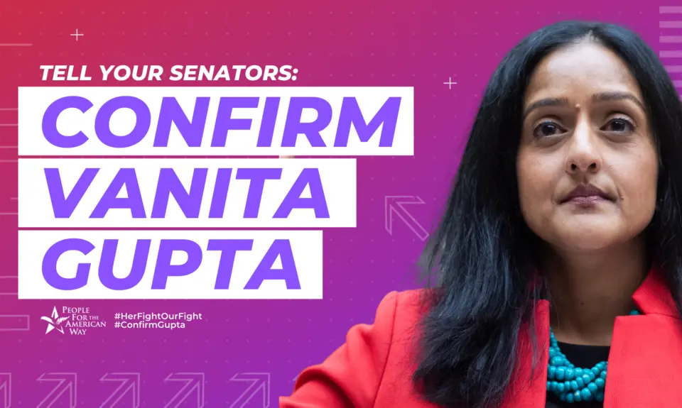 Washington, DC—Following today’s Senate vote to advance Vanita Gupta’s nomination for Associate Attorney General at the U.S. Department of Justice, for full consideration, by discharging the nomination from the Judiciary Committee, People For the American Way President Ben Jealous released the following statement: