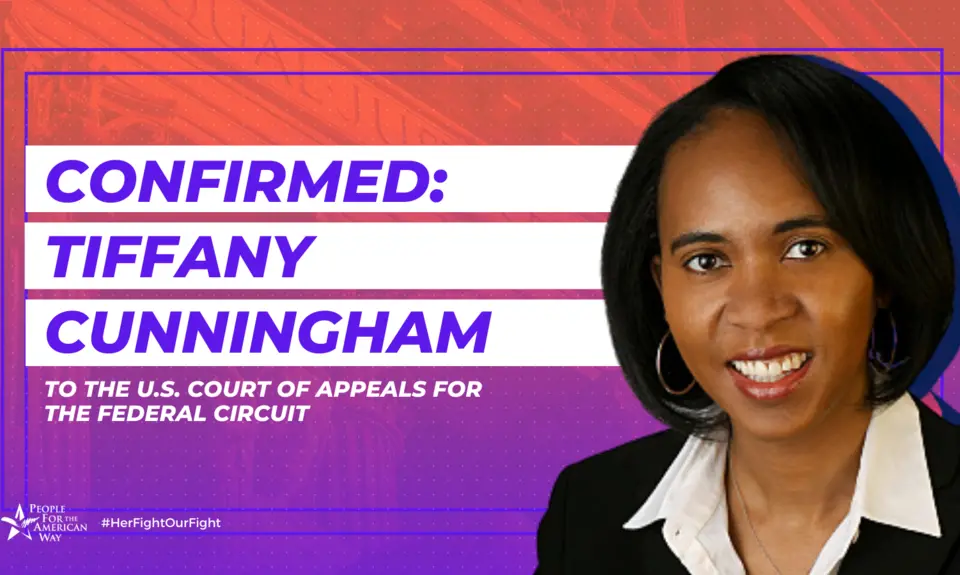 Washington, DC— Following today’s Senate confirmation of Tiffany Cunningham as a United States Circuit Judge for the Federal Circuit, People for the American Way President Ben Jealous released the following statement: