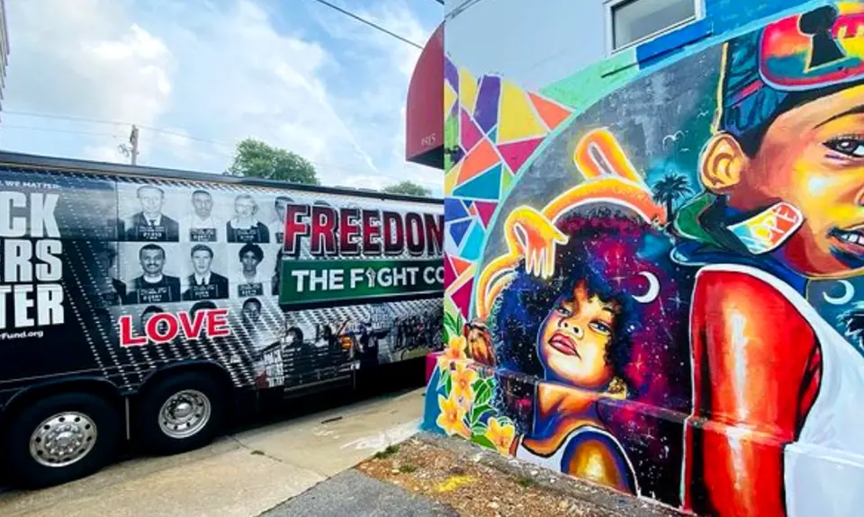 Activists on the bus are demanding passage of the For the People Act, John Lewis Voting Rights Act, and legislation for D.C. statehood. The New Freedom Ride recalls the original Freedom Rides that began 60 years ago, when civil rights activists rode interstate buses to demand an end to racist segregation.