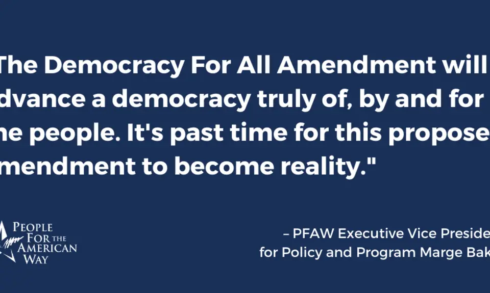 Washington, D.C.— As the House Judiciary Committee today held a hearing for the Democracy For All Amendment (H.J. Res. 2), People For the American Way Executive Vice President for Policy and Program Marge Baker released the following statement: