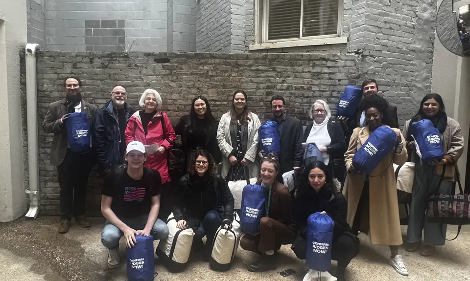 WASHINGTON D.C. —Today, progressive democracy groups, including People for the America Way, Progressive Change Institute, Alliance For Justice, Indivisible, and Stand Up America, delivered sleeping bags to Democratic Senators with an urgent message: Work late. Work weekends. Confirm every judge. With less than 10 judicial nominees that are or will be pending on the Senate calendar, including 4 powerful Court of Appeals nominees, now is the time to finish the work.