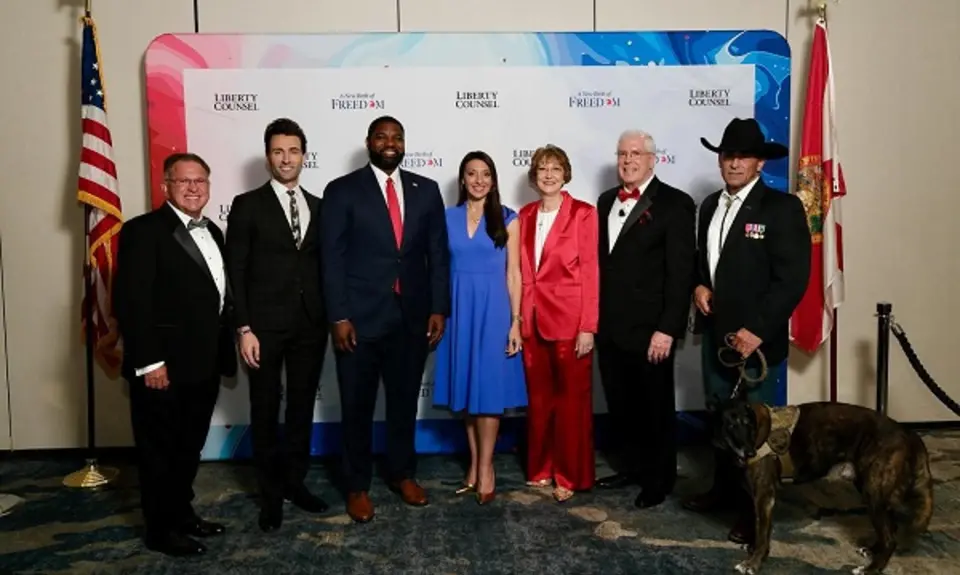Hosted by Mat Staver, the anti-LGBTQ and anti-vax right-wing conspiracy theorist who founded and runs Liberty Counsel, the event also presented a "Defender of Freedom" award to John Strand, a model and right-wing activist who was sentenced to more than two years in prison for his actions during the insurrection at the U.S. Capitol on Jan. 6, 2021, only to be pardoned by President Donald Trump upon his return to office.