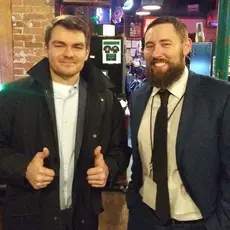 White nationalist Nick Fuentes (left) poses for a photo with Michael Sisco (right).