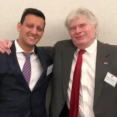 Neil Kumar shared a photo on Gab of himself and Peter Brimelow at the American Renaissance conference Nov. 13, 2021. (Screenshot)