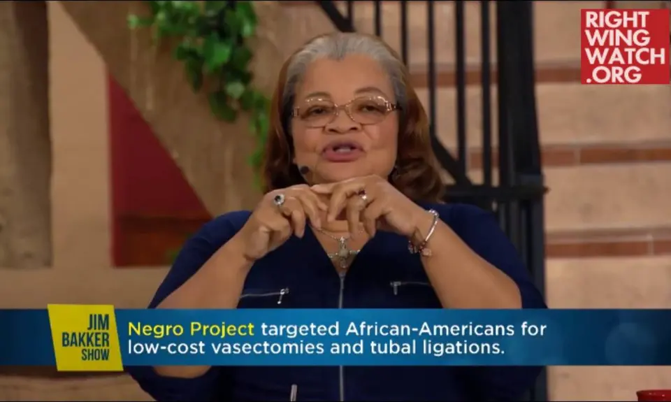 Alveda King, an anti-choice activist and Fox News contributor, appeared on “The Jim Bakker Show” last week to warn that legal abortion is depopulating America, which helps the terrorists win.