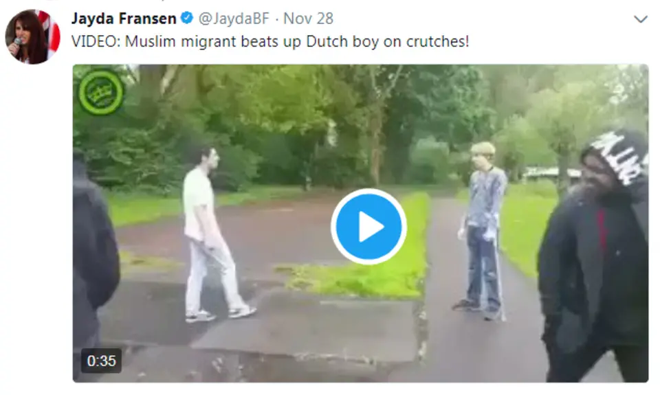 News organizations and Dutch officials have disputed the description of the video, which was tweeted out by an official with the far-right Britain First. ABC News reported that “Dutch police and prosecutors” confirmed that “the video does not show a Muslim nor a migrant.” Snopes reported that the description of the video as showing a “Muslim migrant” originally came from the comment section of the video website where it was originally posted.