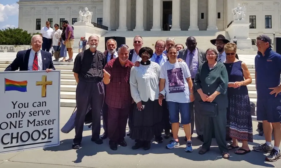 A group of anti-LGBTQ activists gathered on the sidewalk in front of the U.S. Supreme Court on Wednesday to denounce the Court’s marriage equality ruling in Obergefell, which was handed down four years ago to the day. It was announced that some of the speakers would have to leave the gathering early in order to attend a meeting at the White House.