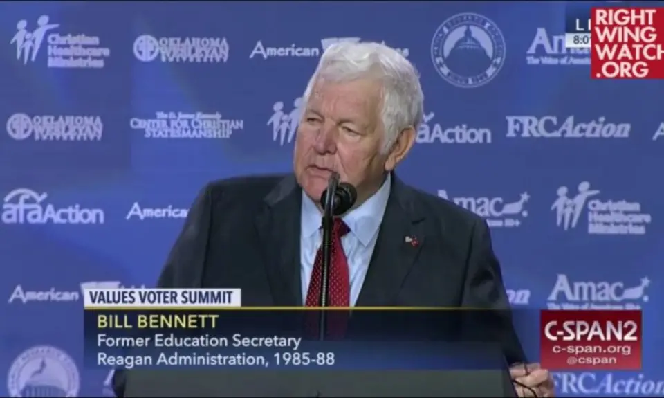 Conservative pundit and former secretary of education Bill Bennett took to the stage at the Values Voter Summit this morning immediately after President Trump to defend Trump against all manner of criticism and to claim that the president is facing enormous media bias.