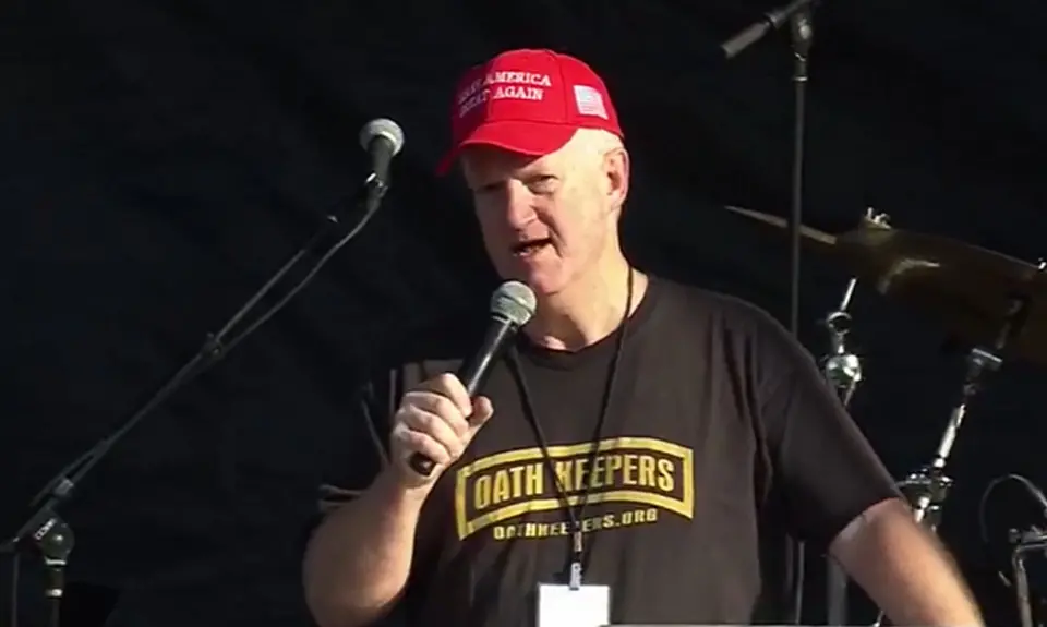 Cook wore an Oath Keepers T-shirt while speaking at the Dec. 12 rally. On the same stage later that day, Oath Keepers founder Stewart Rhodes threatened bloody civil war if Trump did not stay in power. Several Oath Keepers have been charged with conspiring to commit violence in connection with the Jan. 6 attack on the Capitol.