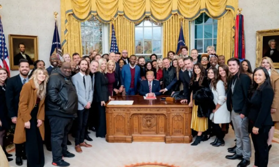In a White House photo of the participants gathered around Trump, Feucht stretches out his hand to touch the president, leading religion writer Jonathan Merritt to snark on Twitter, “If I had a picture of myself falling over people to touch the hem of the garment of a sex offender, I’d never have the guts to share it.”