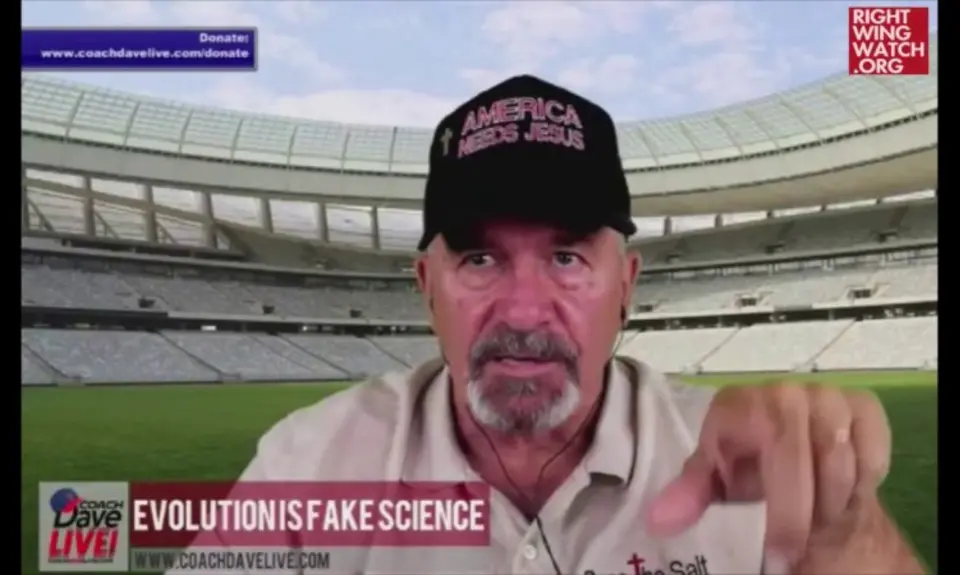 On today's episode of the "Pass The Salt Live" webcast, Religious Right activist "Coach" Dave Daubenmire said that the government should stop spending money on the study of the "fake science" of evolution and instead give that money to scientists who will work to prove the existence of God.