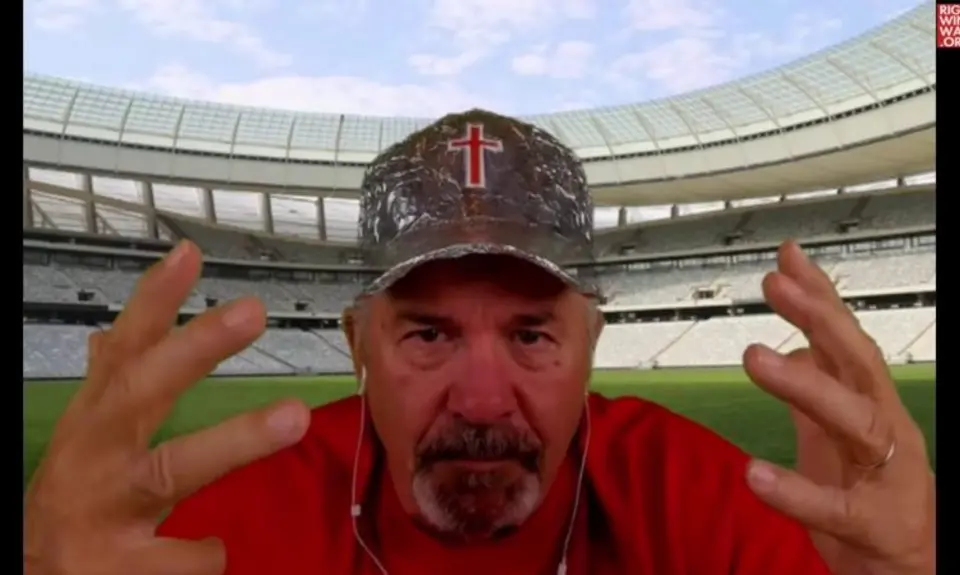 "Let me just lay it out there, because most people won't say it because they don't want to sound racist," Daubenmire said while wearing a literal tinfoil hat. "Prince Harry's wife is half-black. Now, wait a minute. That ain't that royal bloodline lineage there, is it fellas? Isn't there a little bit of mixed blood coming in there?"