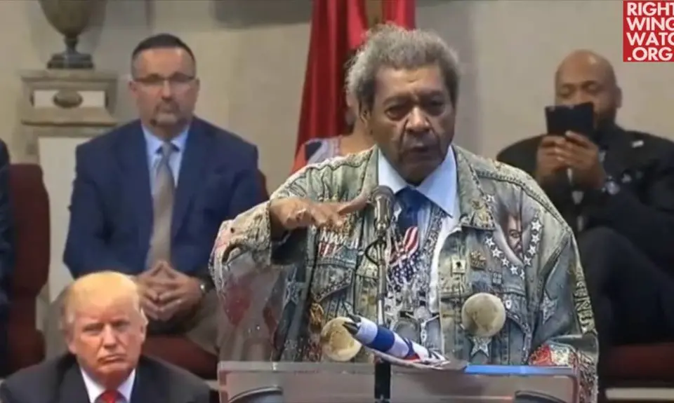 Boxing promoter Don King introduced Donald Trump today at the Midwest Vision and Values Pastors Leadership Conference in Cleveland, where he declared that Trump’s victory in the GOP primaries was God’s will and urged white women and people of color to rally behind the candidate “who will lead us to the Promised Land.”
