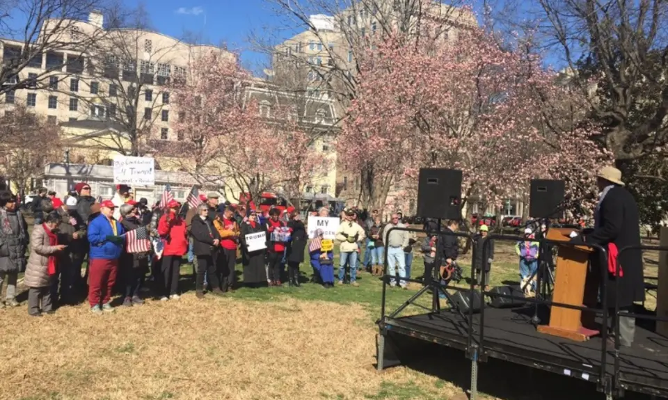 While several speakers addressed the crowd as if the day would be treated as a watershed moment in American political history, the Lafayette Square gathering only attracted a few dozen people.