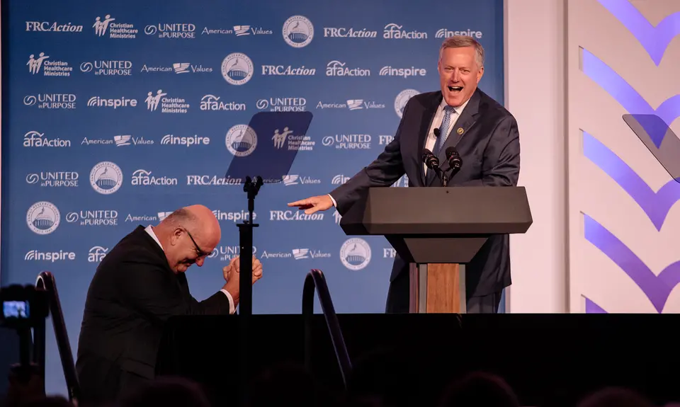 At the Values Voter Summit hosted by FRC Action (the political arm of the Family Research Council) in Washington, D.C., last weekend, Rep. Mark Meadows, R-N.C., foreshadowed news of a possible ouster of Deputy Attorney General Rod Rosenstein with a demand that the embattled Justice Department official appear before Congress to explain a New York Times report stating that Rosenstein once suggested that staff interactions with President Trump be recorded in a potential effort to remove the real estate tycoon from office under the 25th Amendment to the Constitution. (Today has seen conflicting reports regarding Rosenstein's employment status in the Trump administration.)