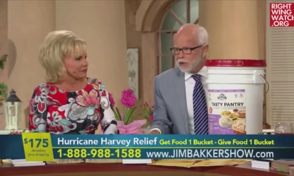 Right-wing pastor Rick Joyner joined televangelist and End Times prepper pastor Jim Bakker on his television program yesterday, where they declared that Hurricane Harvey was God's judgment on the city of Houston and used the devastation wrought by the storm to promote Bakker's line of survival products.