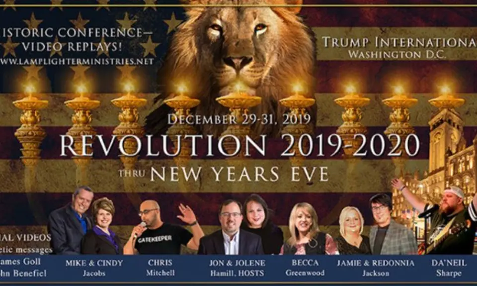 Hamill and his “prophetic” friends were back at Trump International with Cindy Jacobs and other friends for Revolution 2019-2020 over three days at the end of December. James Goll, also affiliated with the New Apostolic Reformation, appeared by video and portrayed the Revolution gathering as a successor to Lou Engle’s The Call, a prayer gathering on the National Mall in 2000. Goll said that prayers by “revolutionaries” would make the impeachment process “boomerang” on Trump’s critics.