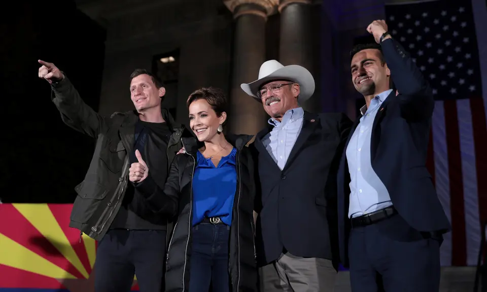 Other election-denying Republican candidates trailing their Democratic opponents joined in alleging fraud. Blake Masters, who has perpetuated a version of the racist replacement theory, found himself behind Democratic Sen. Mark Kelly by nearly 6 percentage points when the AP called the race in favor of Kelly Saturday night.