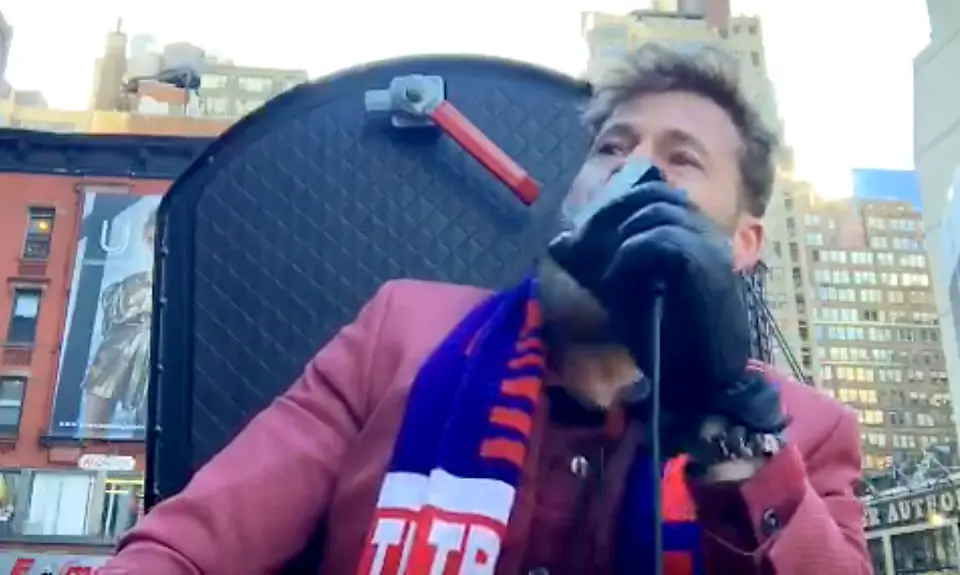 Infowars host Owen Shroyer traveled to Manhattan Thursday to yell at the New York Times Building for approximately 15 minutes.