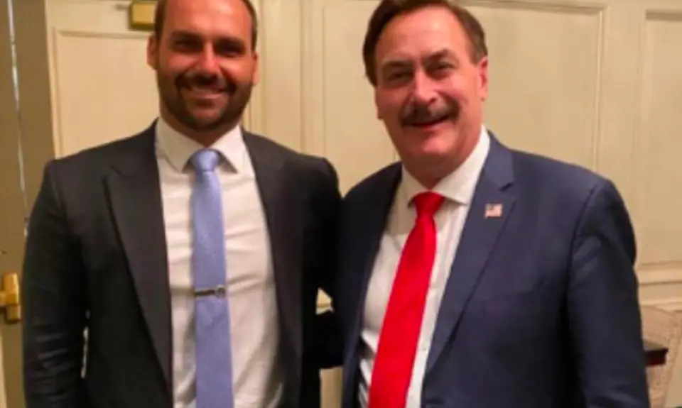 Eduardo Bolsonaro (left) posted this photo posing with Mike Lindell (right) on his Instagram story on Jan. 6, 2021 (Screenshot/Congresso Em Foco)