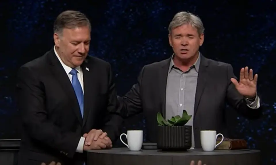Following Pomepo's remarks during the early Sunday service, he and Hibbs sat down for a short conversation. Then, to close out the service, Hibbs laid hand upon Pompeo and led the congregation in praying for his future. (Pompeo is widely expected to run for president in 2024.)