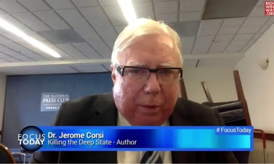 Jerome Corsi, the Washington bureau chief for the right-wing conspiracy theory outlet Infowars, appeared on TheDove TV's "Focus Today" program yesterday, where he declared that "the hand of God" is on President Trump to bring Hillary Clinton and Barack Obama to justice for treason.