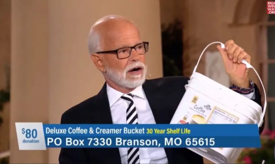 End Times prepper pastor Jim Bakker dedicated his entire television program today to pitching his new line of survival coffee, telling his audience that things will get so desperate when the Last Days arrive that those who are prepared will be able to get a new car in exchange for one packet of this coffee.