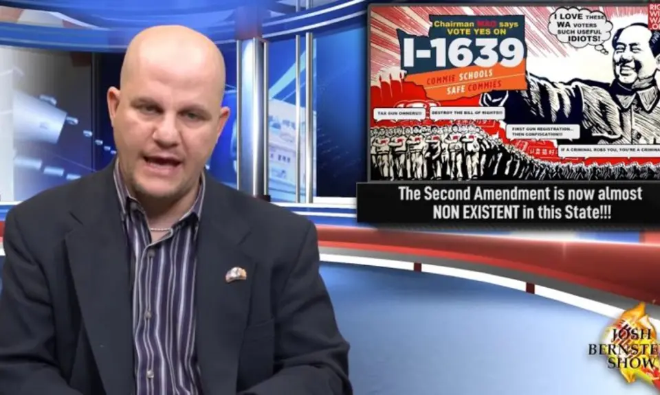 Last week, voters in the state of Washington overwhelmingly passed a gun reform initiative which right-wing commentator Josh Bernstein is urging residents to "defy" by shooting police officers, if necessary.