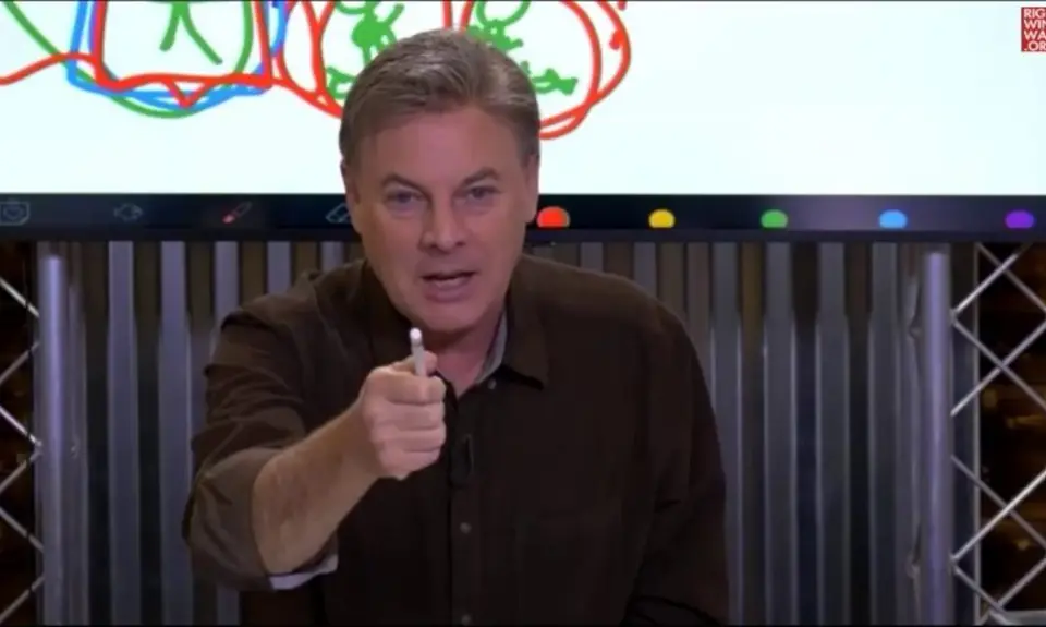 During on online Bible study session on Friday, Wallnau drew an increasingly jumbled diagram in an effort to visually demonstrate how Trump is "under the authority of God" and protected by "the blood of Jesus Christ," while Trump's critics, who are "operating outside of the realm," are being controlled by Satan.