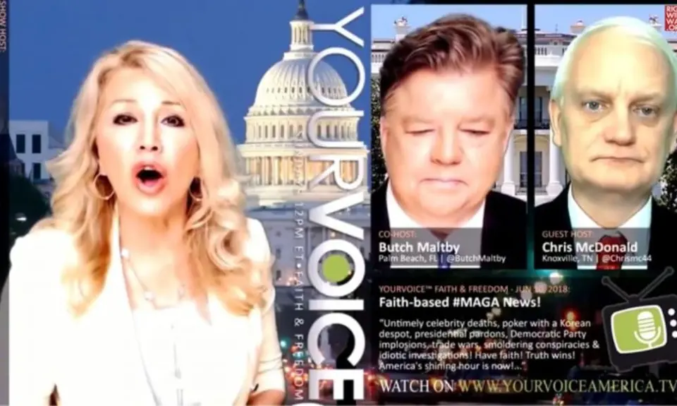 In addition to offering her own line of beauty and skincare products, Leigh Valentine is also the Trump-loving host of a weekly "Faith & Freedom" program on Bill Mitchell's "YourVoice America" network. On Sunday's broadcast, she declared that God is behind every word that President Trump speaks.