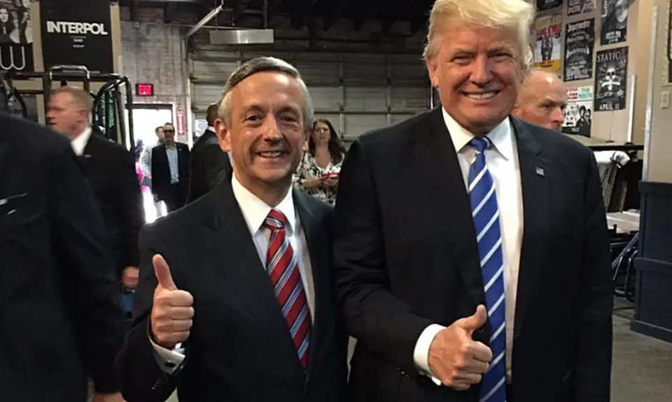 Jeffress has hosted Trump at First Baptist Church of Dallas. In last year’s “The Kingdom, the Power, and the Glory: American Evangelicals in an Age of Extremism,” author Tim Alberta described the Trump “shrine” in Jeffress’s office: